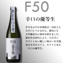 大吟醸並みに酒米を磨いた普通酒といえば、「F40」がありますが、この「F50」の最大の特徴は、日本酒度+10以上の思い切った辛口であることです。